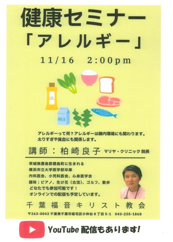 11月16日(日)午後2時より、院長のオンライン講演がございます(YouTubeライブ配信:無料)。